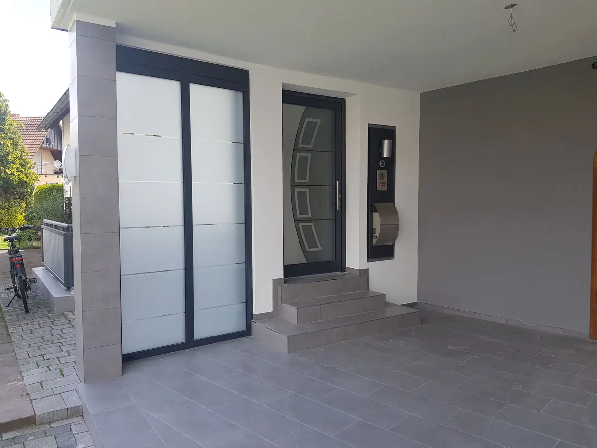 Hier klickenDieses Eingangselement wertet unseren Hauseingang auf. Unser Haus hat ein ganz anderes Gesicht bekommen. Tolle Wärmedämmung, pflegeleicht, der Fingerprint ist absuter Komfort!