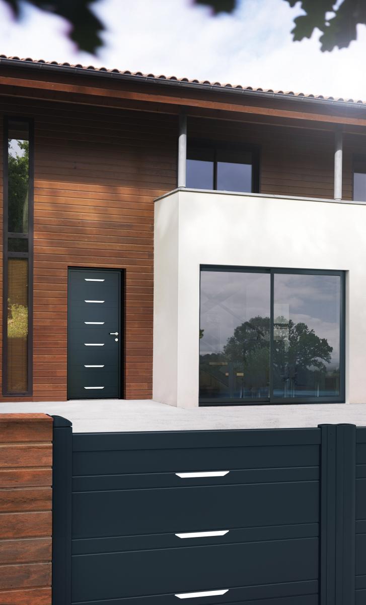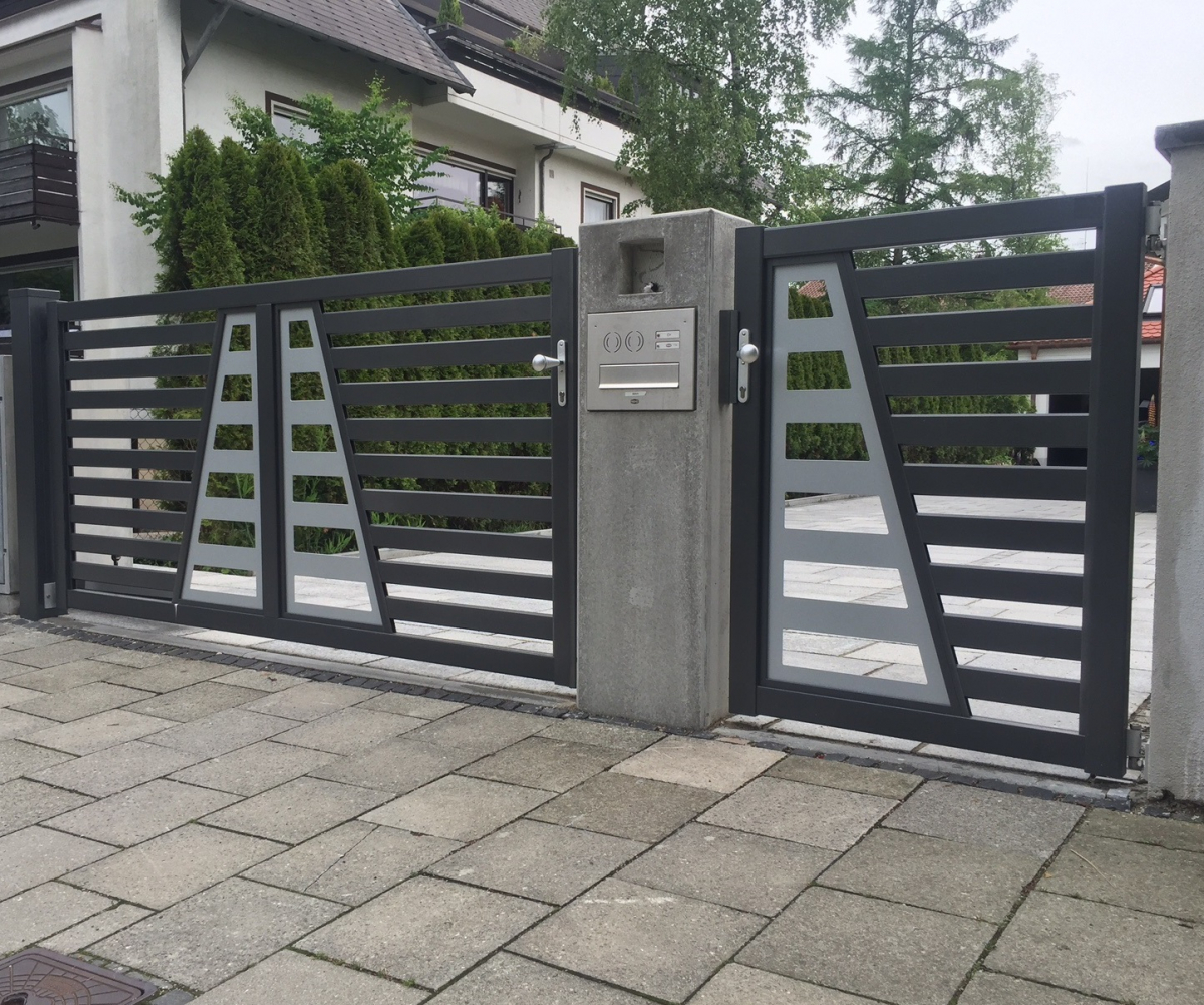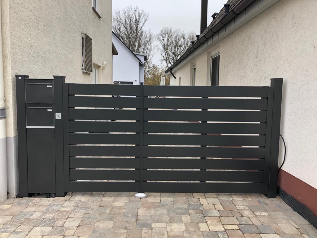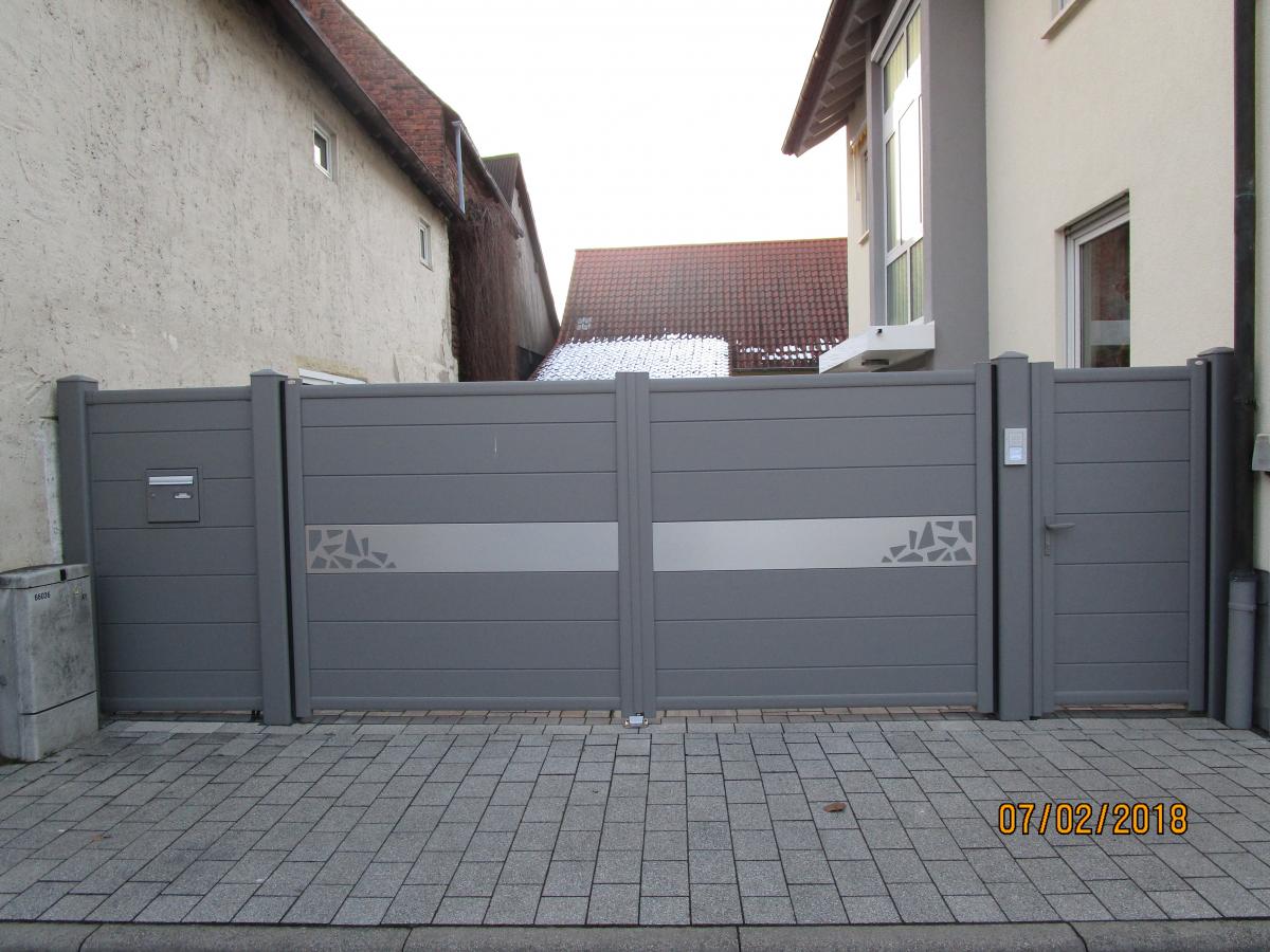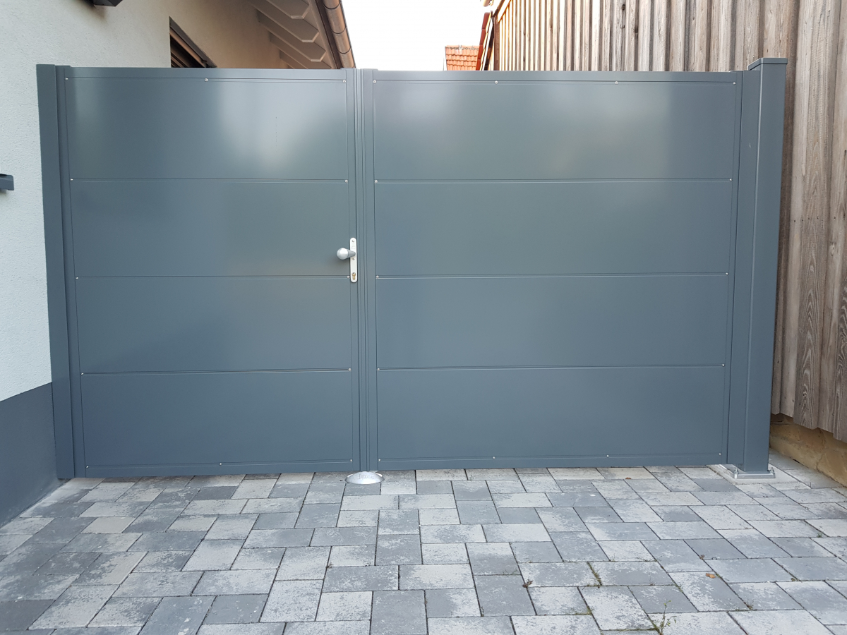 Telefon: 09345 92 80 440 Hoftore - EingangstoreAusgereifte Konstruktionen für eine stilgerechte Gestaltung des Eingangsbereichs. Wartungsfreie Hoftore aus Aluminium. Abverkauf Hoftor Neu anthrazit